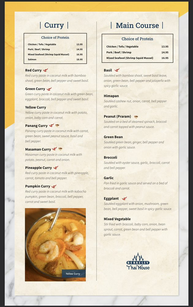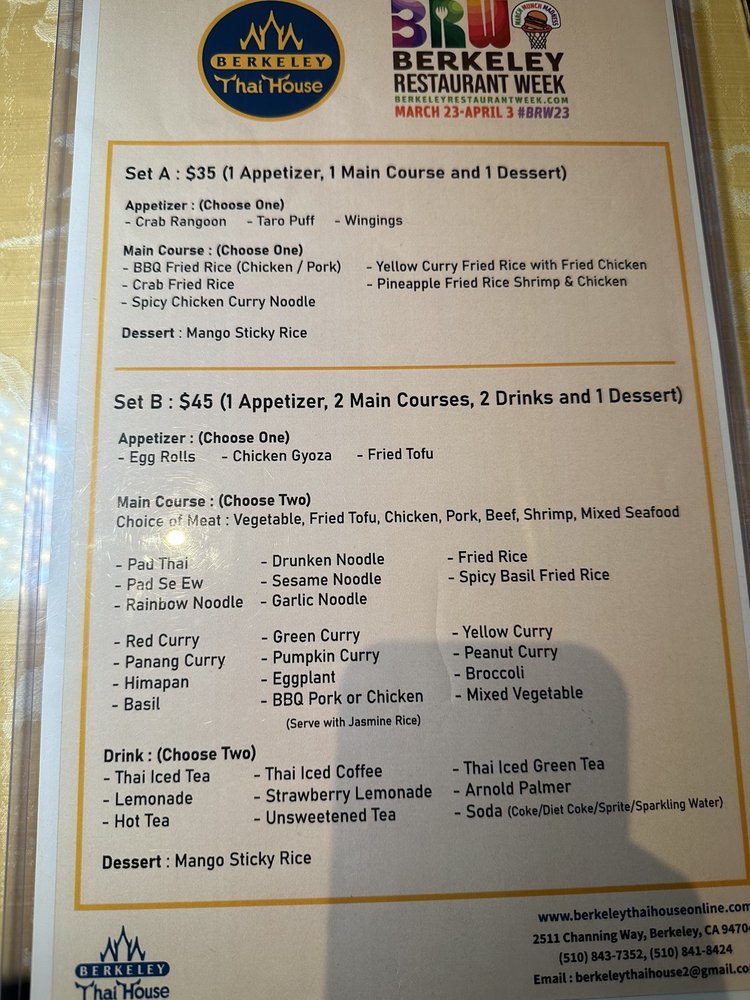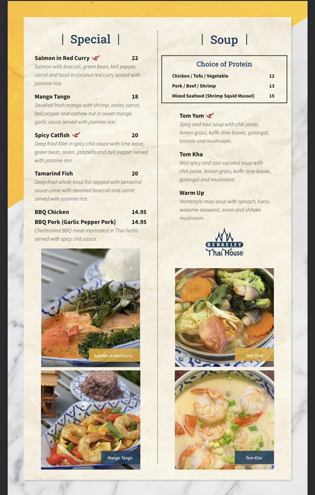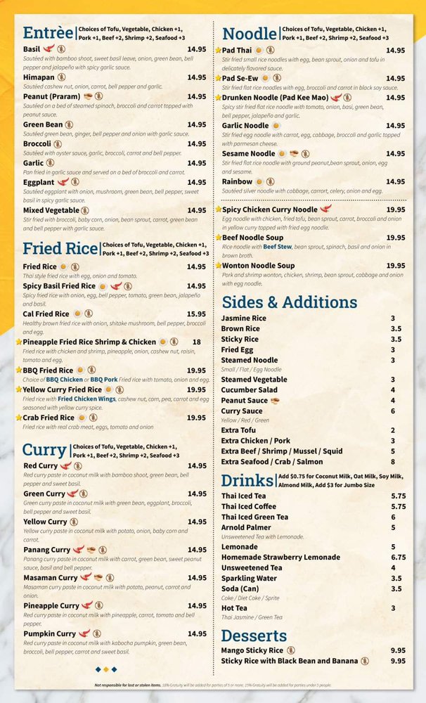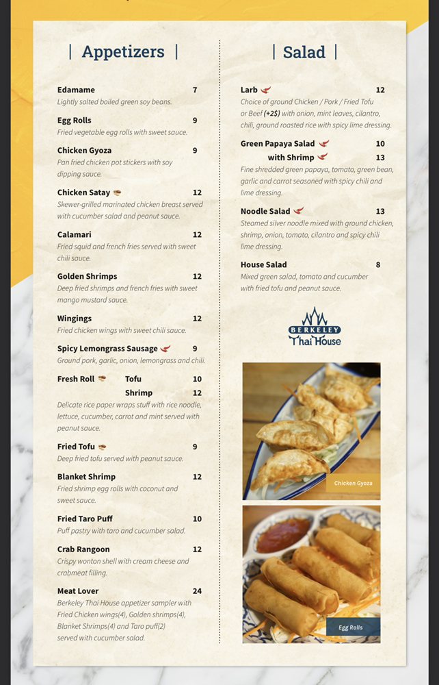 Berkeley Thai House, a vegan Thai restaurant in Berkeley, CA, offers a diverse menu with enticing options like garlic noodles, red curry, sesame noodles, and pad Thai. Customers rave about the flavorful dishes, with highlights including the yellow chicken curry, Thai iced tea, and Drunken noodles. The combo meals, which include an entree, appetizer, and drink, are a popular choice for value and variety. The restaurant's cute ambiance makes it a great spot for dates or casual outings with friends and family. With friendly service and a wide range of vegetarian options, Berkeley Thai House is a must-visit for lovers of authentic Thai cuisine and those looking for a satisfying meal in a welcoming atmosphere. Make sure to try their rainbow noodles and potstickers for a unique and delicious dining experience.